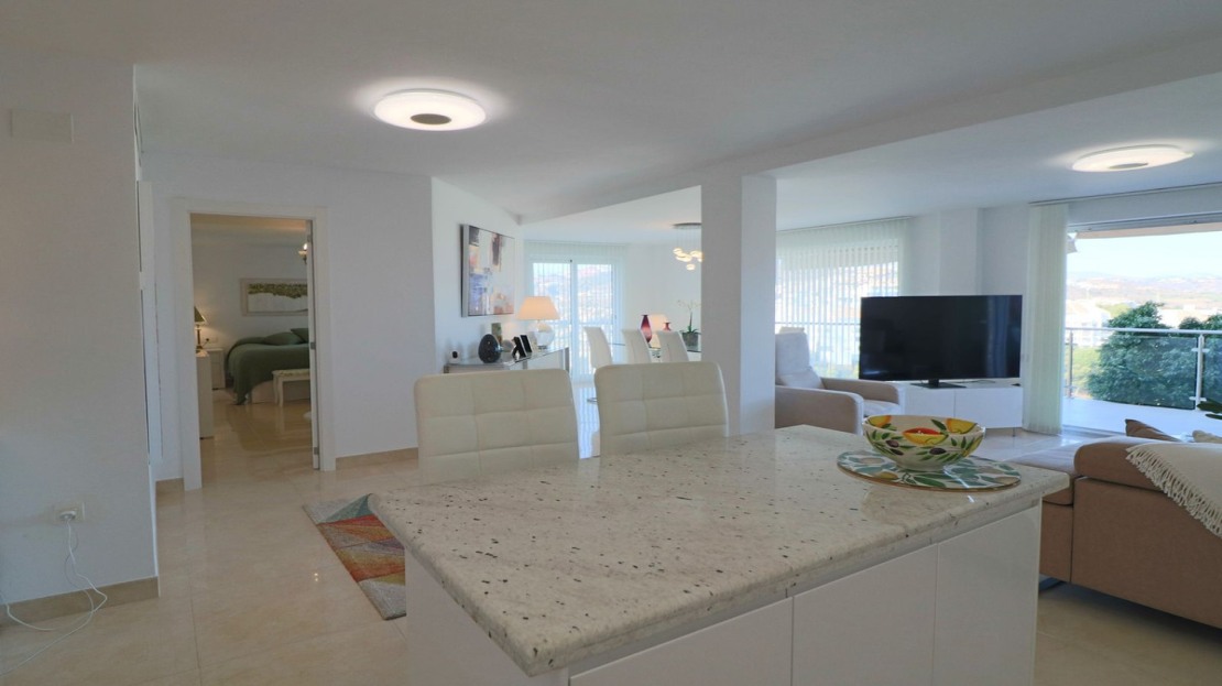 Spectacular 5 bedroom flat on an elevated ground floor with unobstructed views of the Miraflores Golf Course, Mijas, and the mountains, in a Luxury Urbanisation with extensive gardens and a large communal swimming pool with spectacular views over Mijas and Fuengirola and the Mediterranean Sea in the background.