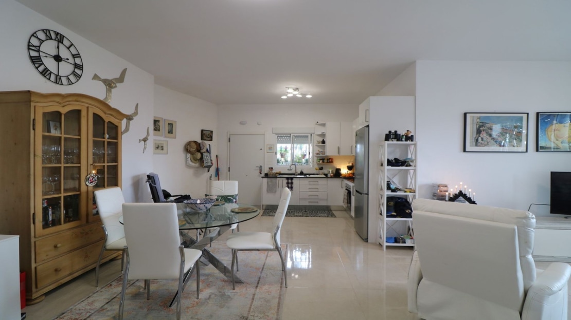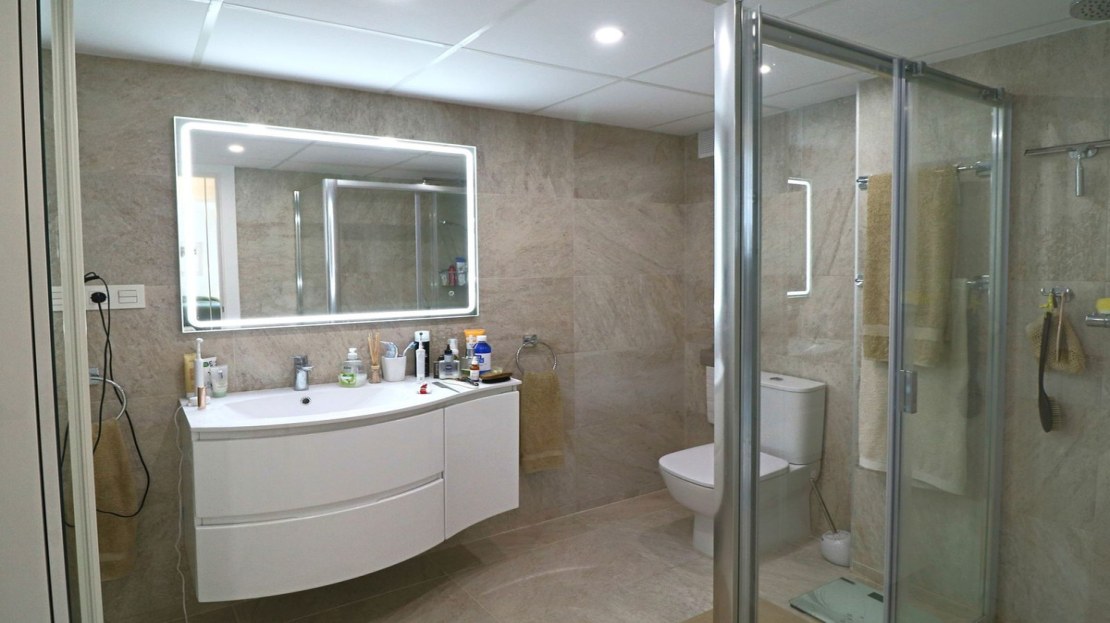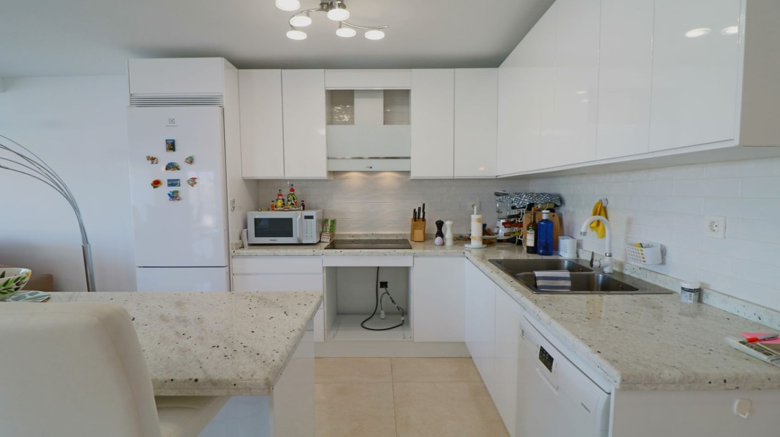 In fact, these are 2 flats with separate entrances. The top floor flat consists of a spacious living/dining room, a modern open plan fully fitted kitchen, 3 large bedrooms, 2 full bathrooms and a magnificent terrace with unobstructed views over the golf and the mountains. A second flat situated on a lower floor consists of a second living/dining room with a modern open plan fully fitted kitchen, a master bedroom with en suite bathroom, a second bedroom, a second bathroom/toilet and finally a large terrace with the same unobstructed views as the top floor flat.