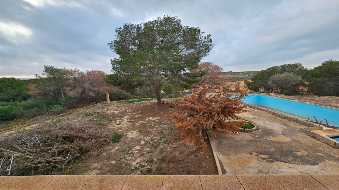 There is a very large swimming pool outside of 32m2,