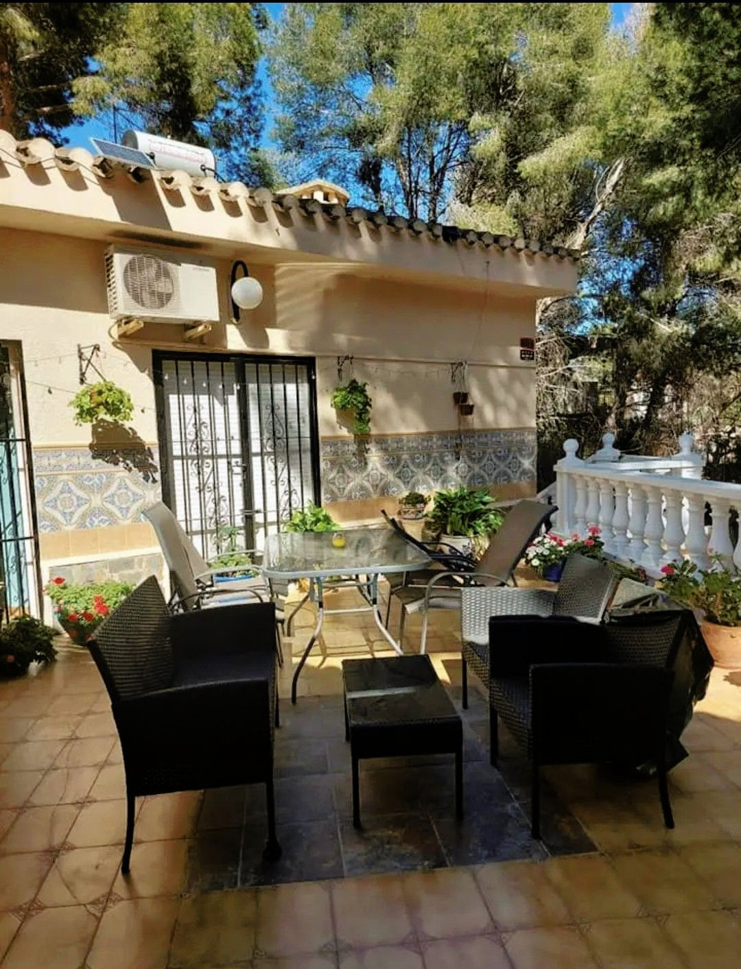 All of the main rooms in the villa have hot and cold air-conditioning to cater for the hot and cooler months. There are solar panels on the roof for hot water.