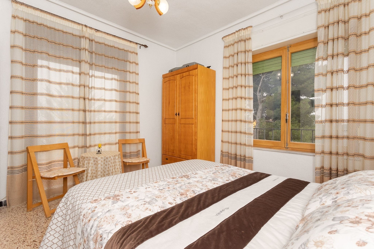 The villa has a good floor plan and distributed over two floors there are five bedrooms, two bathrooms, a guest toilet, living room and kitchen. There is another kitchen equipped with a wood stove and grill. In the garden there are plenty of outdoor areas, fruit trees and a playground with swings. The large pool also has hydromassage. The homely villa has an inviting feel with lots of charm and pleasant light. The rooms are spacious and lightly furnished.