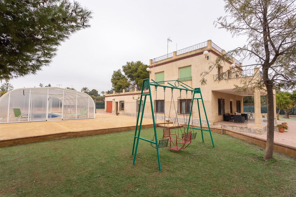 Fantastic finca with large plot, private pool and terraces in Elche A warm welcome to Elche and this fantastic finca with a well-proportioned plot, a large terrace, a roof terrace, a private pool and a garage. Here you live a few kilometers from the pulse of the city in central Elche and at a comfortable distance from shops and restaurants. The Mediterranean Sea and beautiful beaches can be reached in about 20 minutes by car.