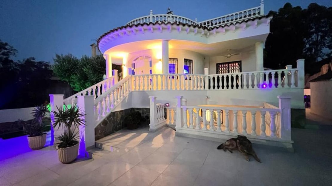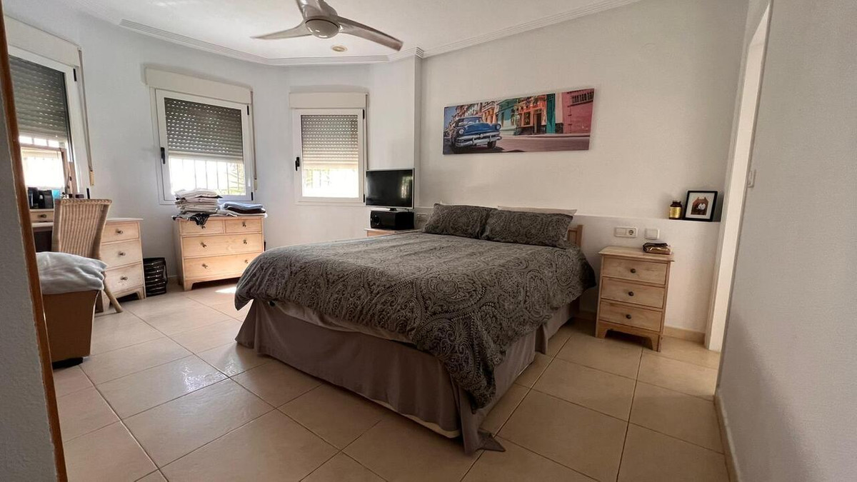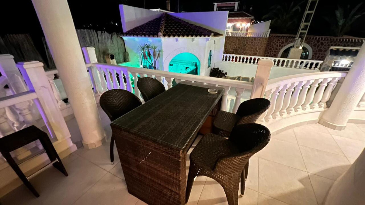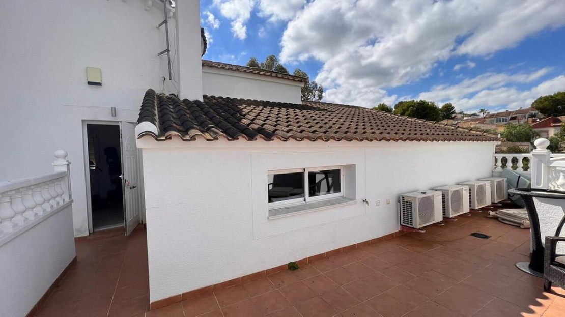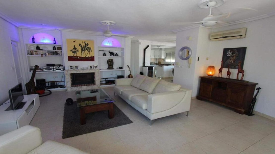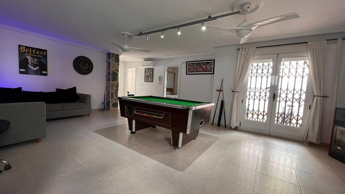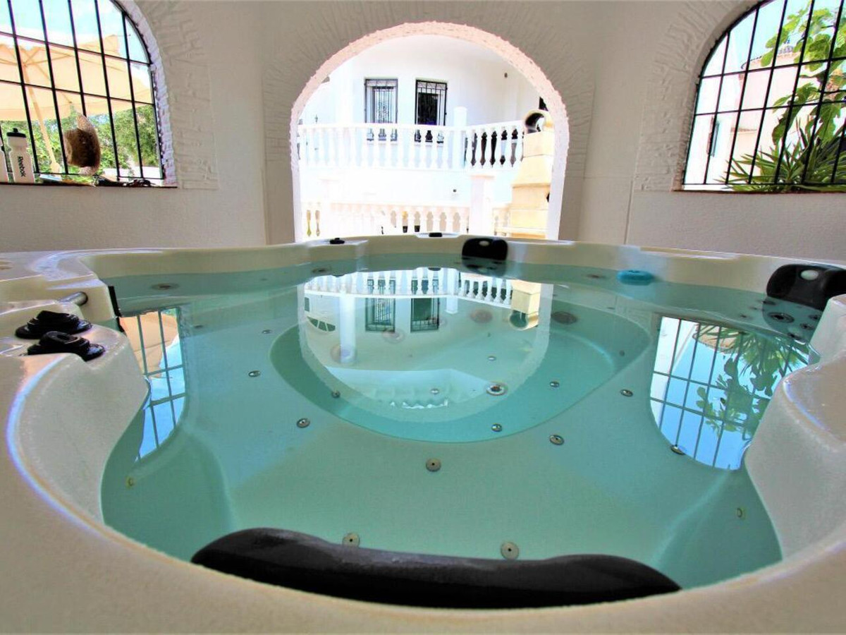 This fabulous spacious five bedroom, three bathroom detached villa is located in Vistabella Village and has a beautiful 10x4m private swimming pool and lots of outside space. There are two receptions and a beautiful large, modern and fully fitted kitchen. The five double bedrooms are of great size, have built-in wardrobes and there is air conditioning and ceiling fans throughout the property. Lots of outside space perfect for entertaining, sunbathing and al fresco dining and there are beautiful mountain views. There is off-road parking at the property. Jacuzzi and pool table all included and the property is being sold partially furnished.Vistabella Village is close to Vistabella Golf Course with its 18-holes, driving range, clubhouse, paddle tennis and bowls. There are bars and restaurants on the urbanization as well. Close to the Spanish towns of Los Montesinos and San Miguel de Salinas, 35 minutes drive away from Alicante International Airport and only 15 minutes by car to the golden sandy beach of Guardamar del Segura; one of the most beautiful beaches on the Costa Blanca and Orihuela Costa. Here you will find lots of lovely Spanish bars and restaurants along its long promenade.