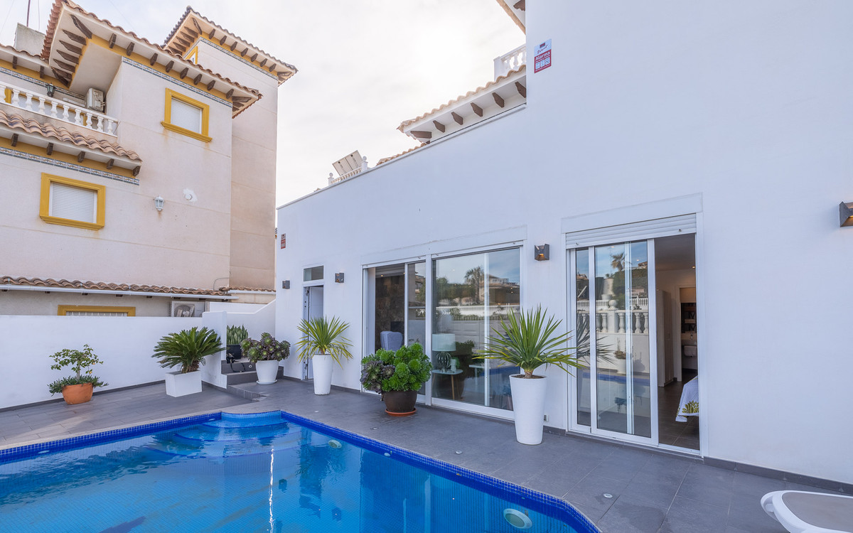 Discover this spectacular fully renovated villa in La Zenia, Orihuela Costa—a move-in-ready property that combines elegance, spaciousness, and an unbeatable location. With a 155 m² built area on a 263 m² plot, this home offers the perfect balance of comfort and style, ideal for enjoying the Mediterranean climate all year round.