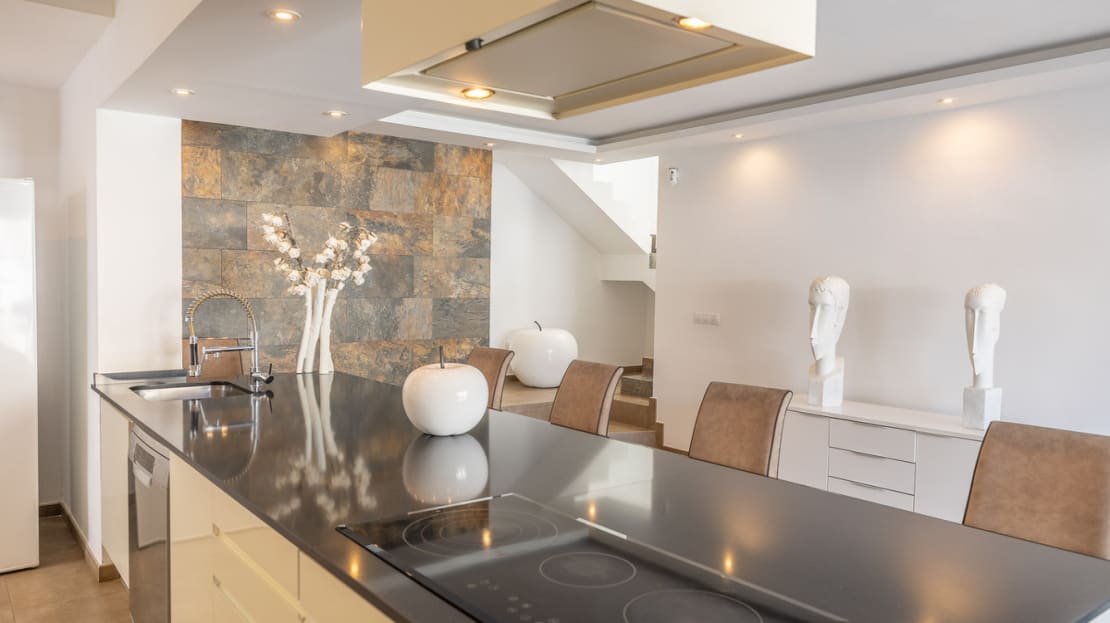 The villa’s interior stands out for its modern and functional design, featuring five spacious bedrooms and four full bathrooms, plus a guest toilet. The spaces have been carefully distributed to ensure maximum comfort for the whole family, offering bright and well-ventilated rooms.