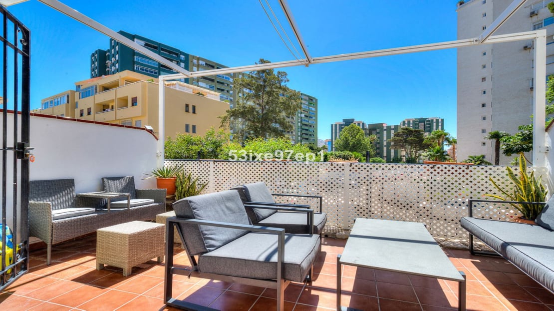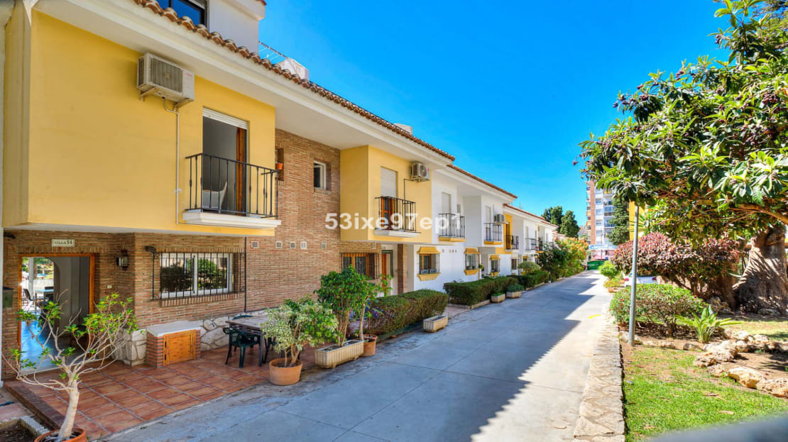 Welcome to this spacious townhouse in popular Pueblo Cristina in the heart of Los Boliches in Fuengirola.