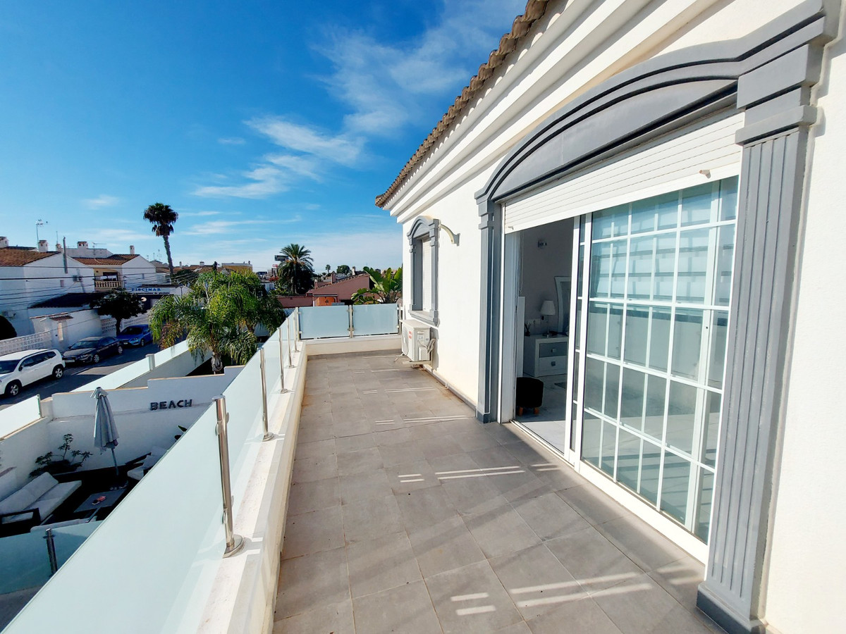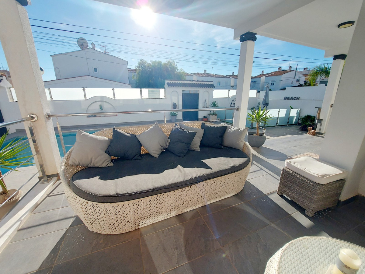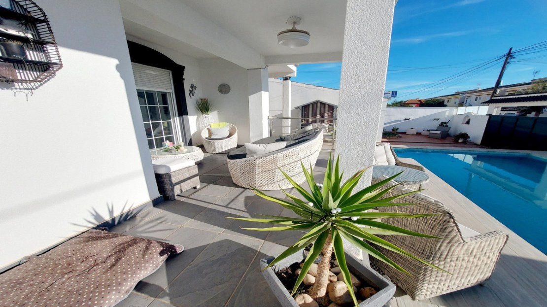 Discover your dream home nestled between Cabo Roig and La Zenia, just a short stroll from the serene Playa Cala La Caleta beach. This exquisite detached villa offers unparalleled luxury and convenience. Set on a generous 450m² plot, the property boasts a private pool, driveway, and garage, surrounded by beautifully landscaped gardens with multiple seating areas and an outdoor kitchen—perfect for entertaining.