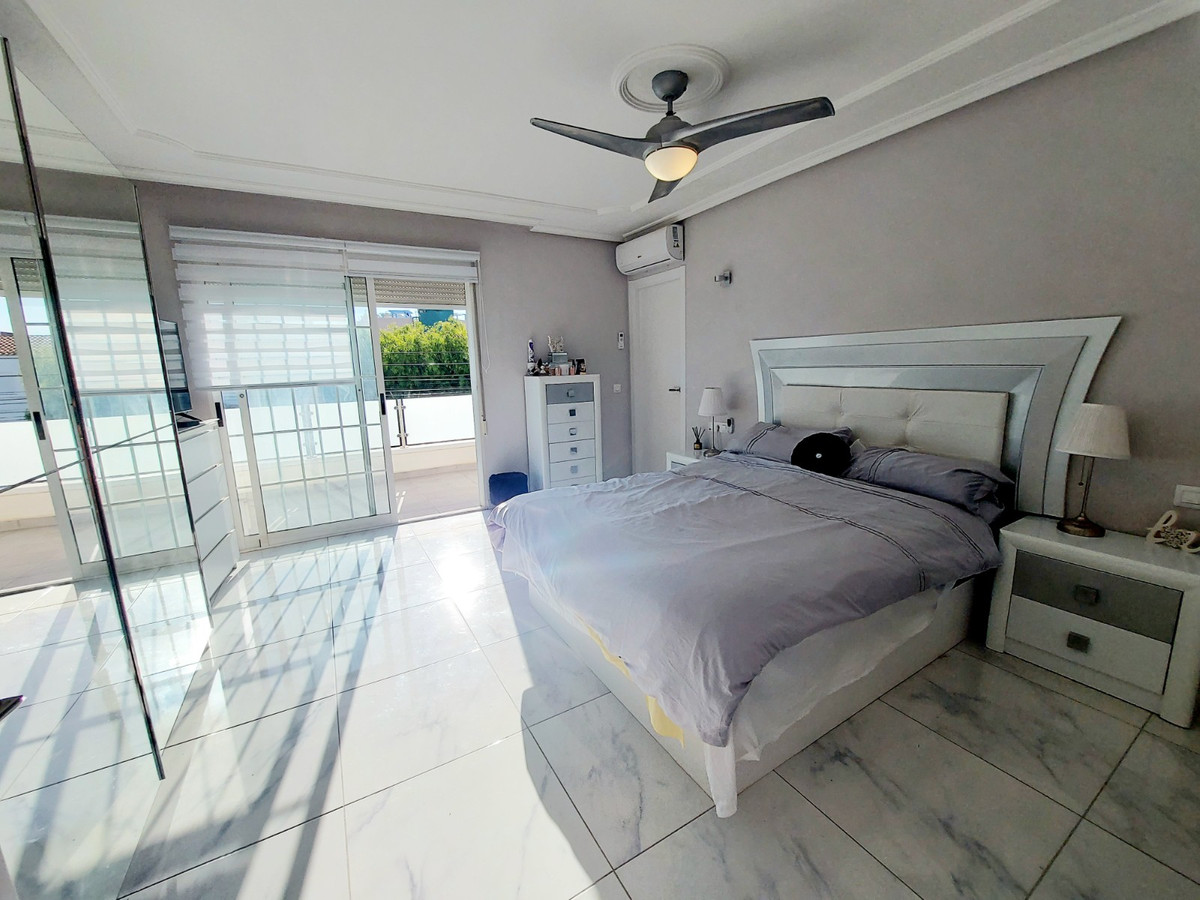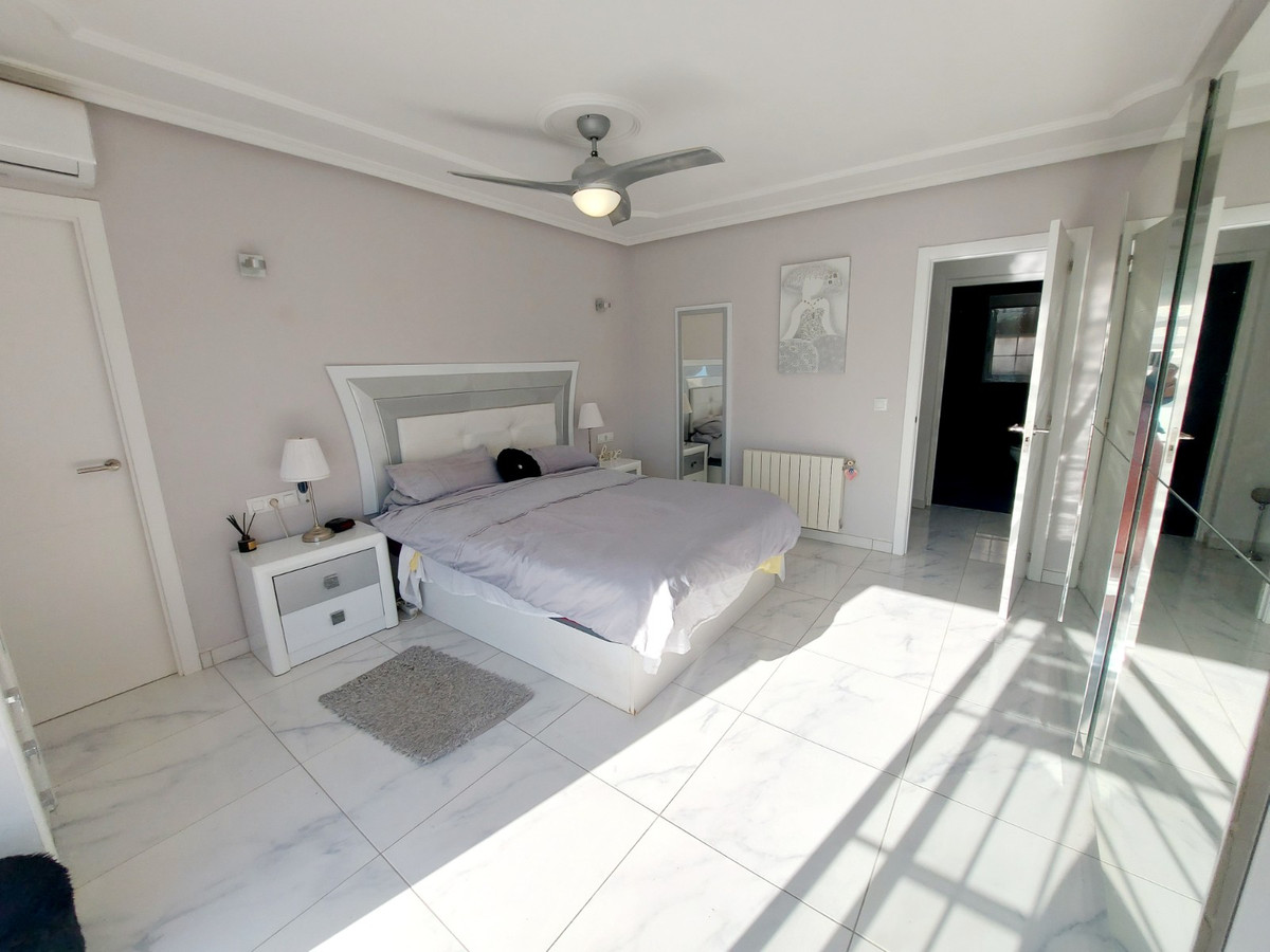Step inside to find a spacious lounge with terrace access, offering breathtaking pool views. The modern kitchen is complemented by a sunroom and utility room, ensuring both style and functionality. With five double bedrooms, including a ground-floor option, this home provides ample space for family and guests. The master suite features a private balcony and walk-in wardrobe, while additional bedrooms are located on the first floor.