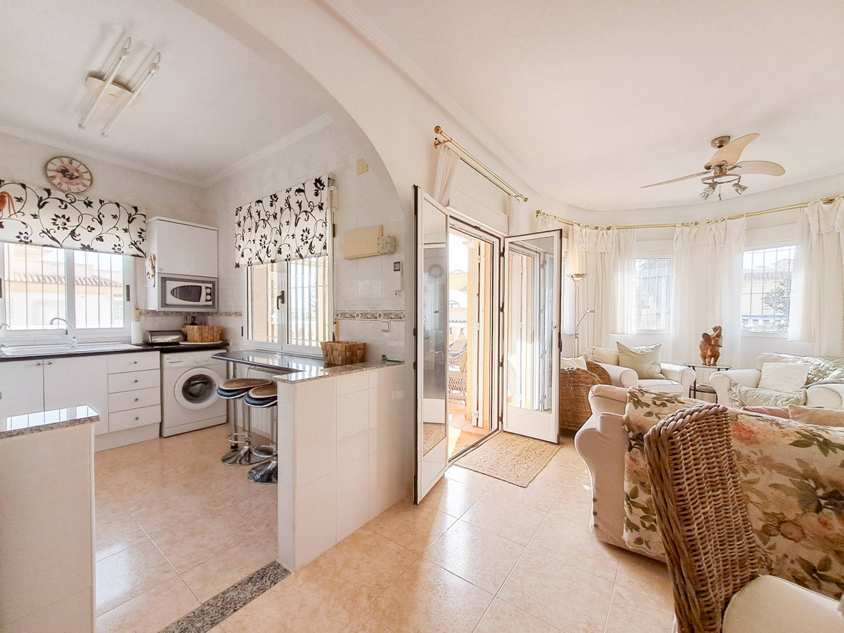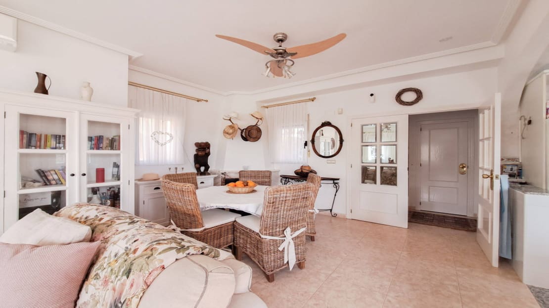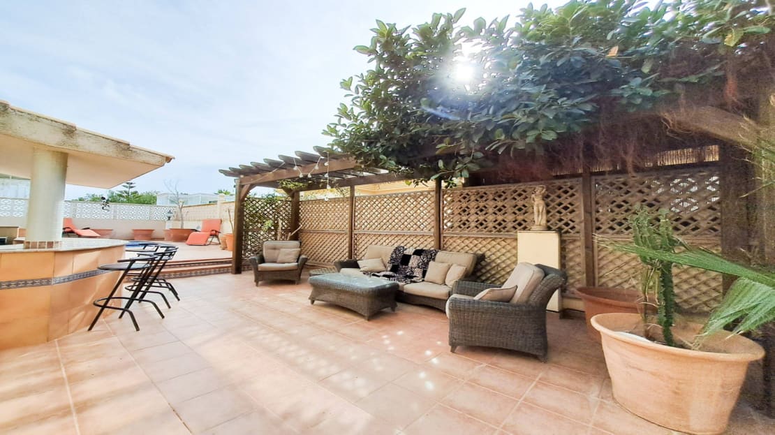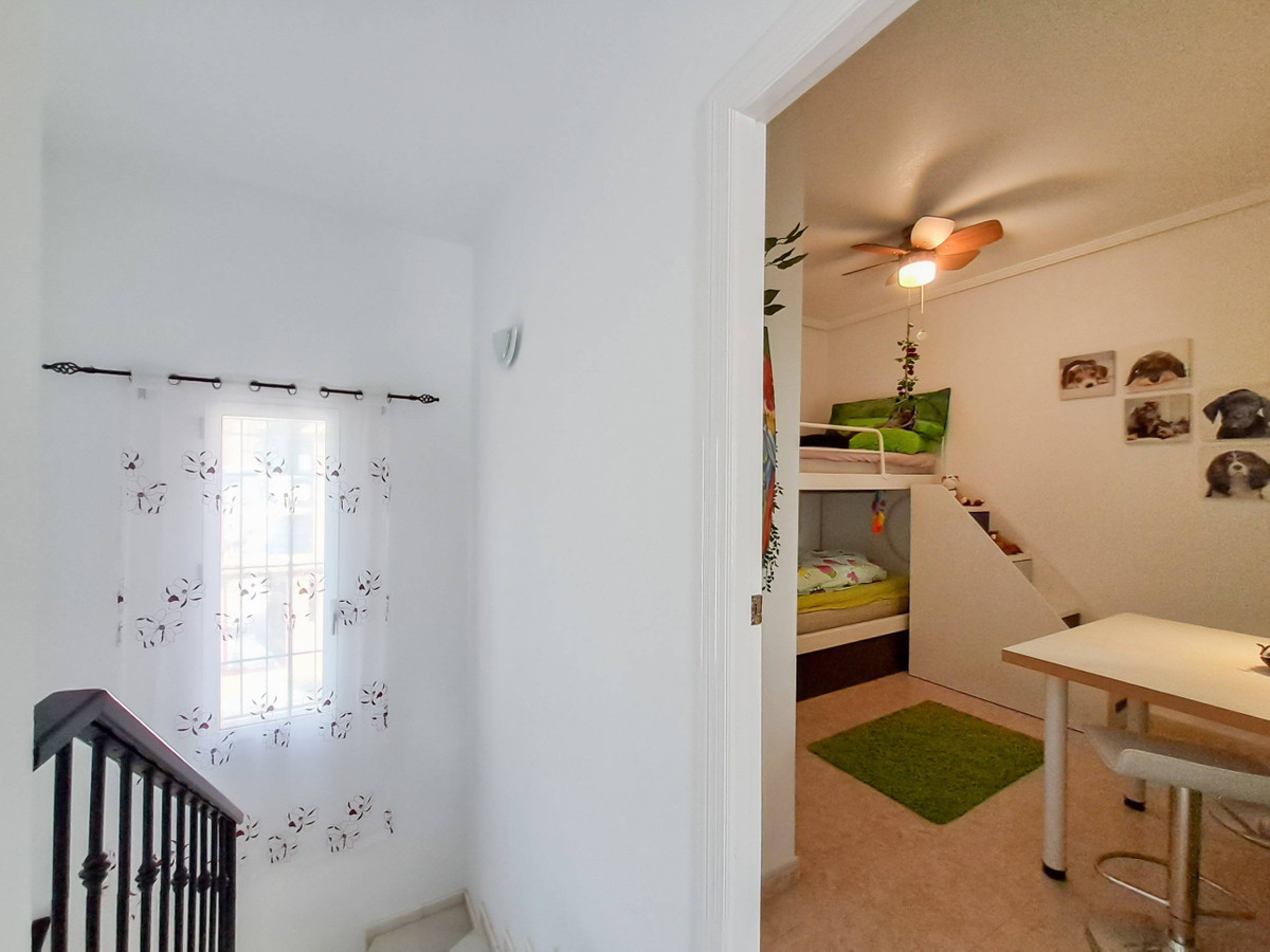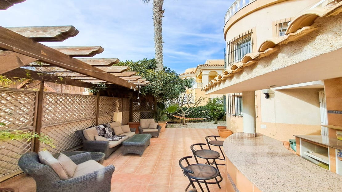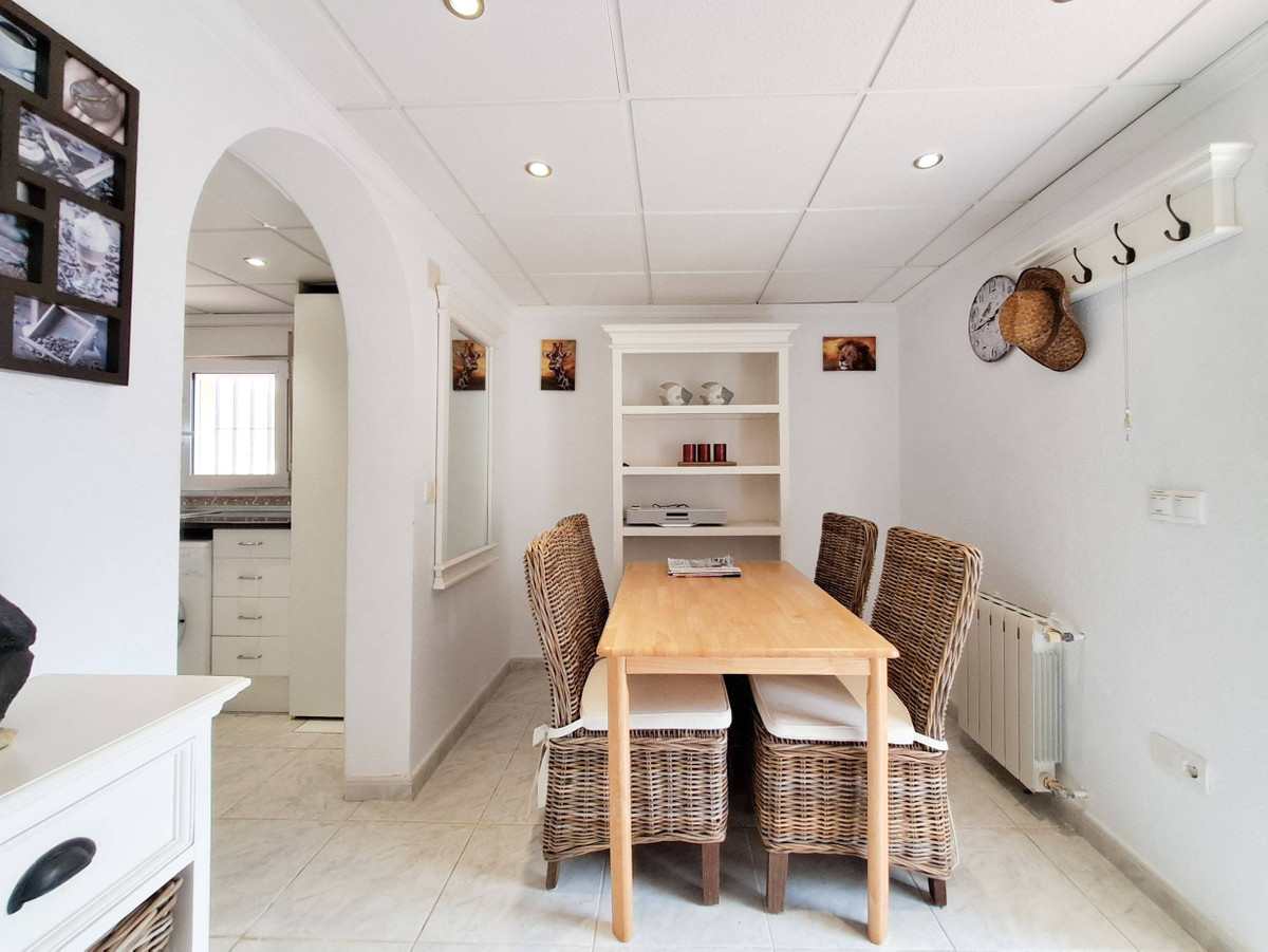 This property, located in the Las Filipinas area of Orihuela Costa, offers a substantial living space with a total of 170 square meters, situated on a 397-square-meter plot. It is conveniently positioned 4 kilometers from the beach, enhancing its appeal for those who enjoy coastal living. The house features a practical layout with three double bedrooms and two single bedrooms, accompanied by three bathrooms, making it ideal for a family or as a spacious holiday retreat. The property is in good condition and faces south, ensuring abundant natural light.