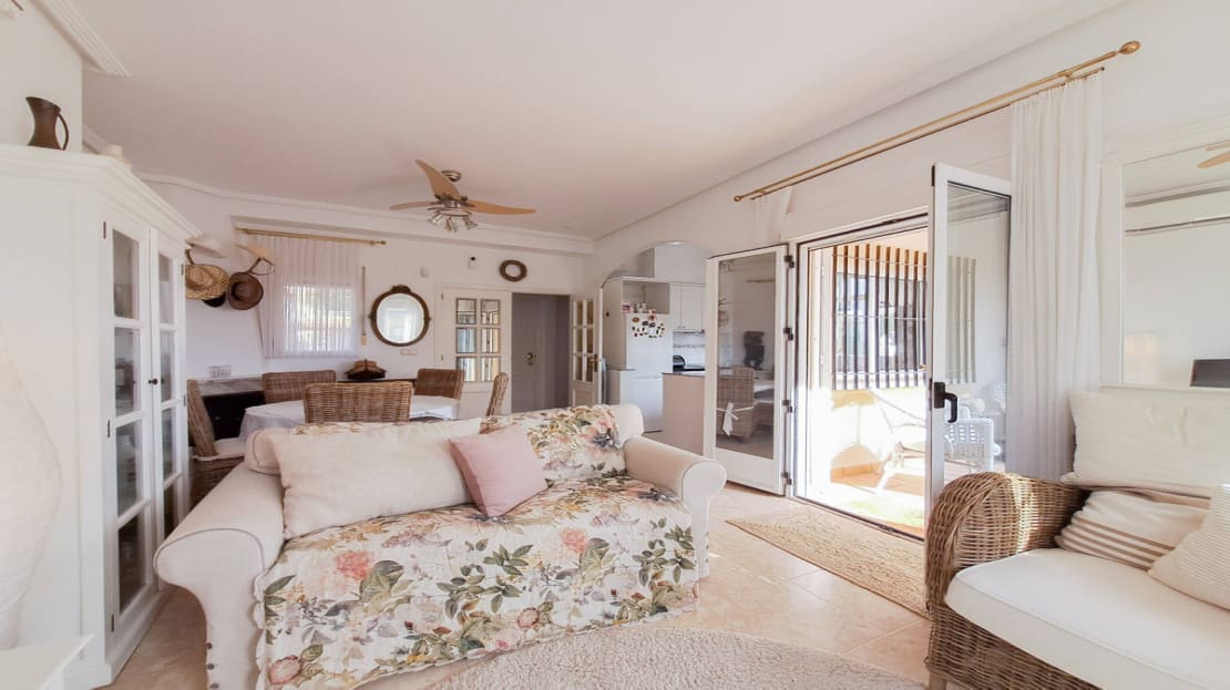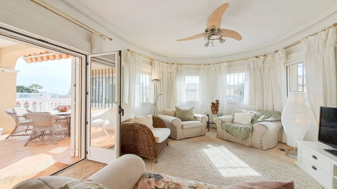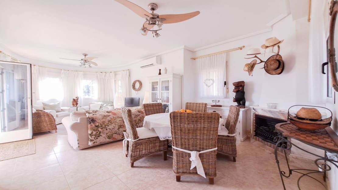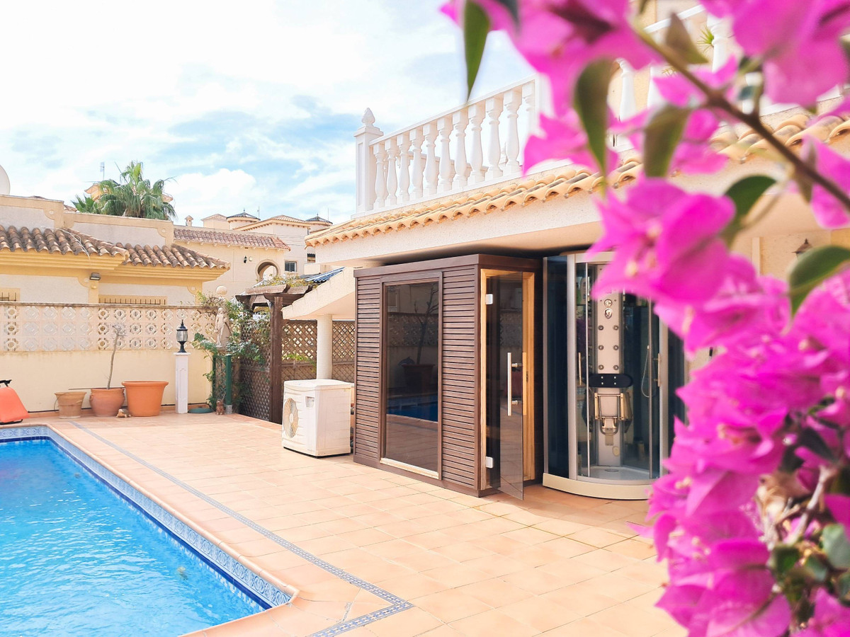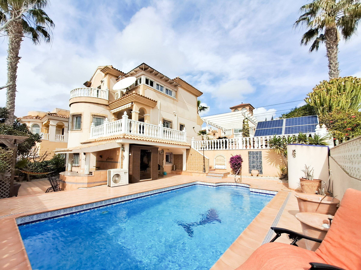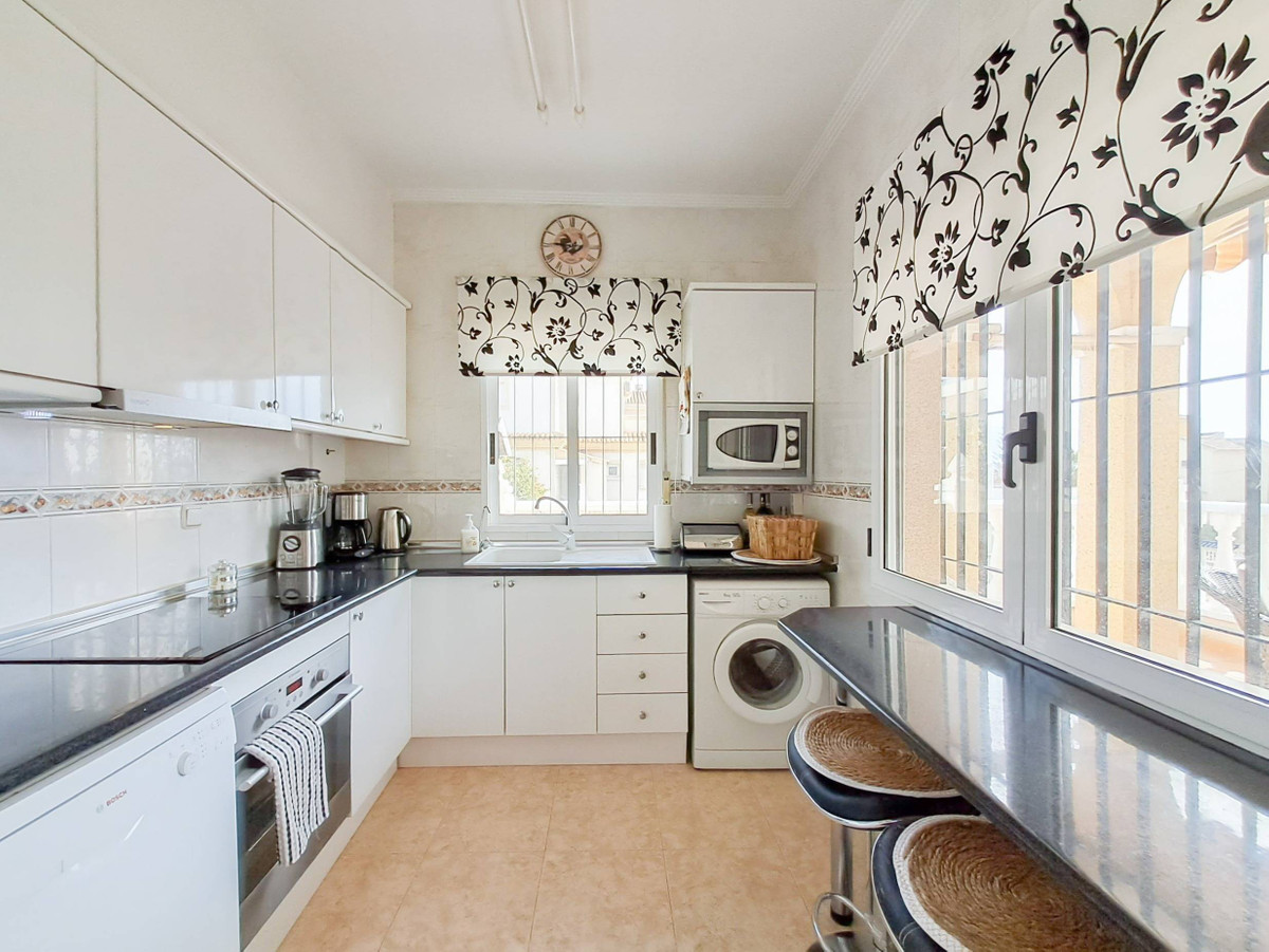 This property, located in the Las Filipinas area of Orihuela Costa, offers a substantial living space with a total of 170 square meters, situated on a 397-square-meter plot. It is conveniently positioned 4 kilometers from the beach, enhancing its appeal for those who enjoy coastal living. The house features a practical layout with three double bedrooms and two single bedrooms, accompanied by three bathrooms, making it ideal for a family or as a spacious holiday retreat. The property is in good condition and faces south, ensuring abundant natural light.