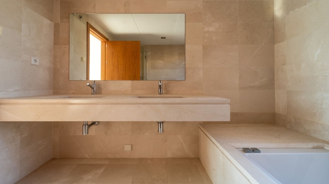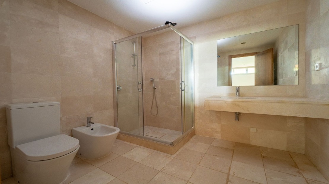On the second level you find 3 bedrooms and 2 bathrooms. ( Master bedroom with on suite and private terrace ) All bedrooms have fitted wardrobes .