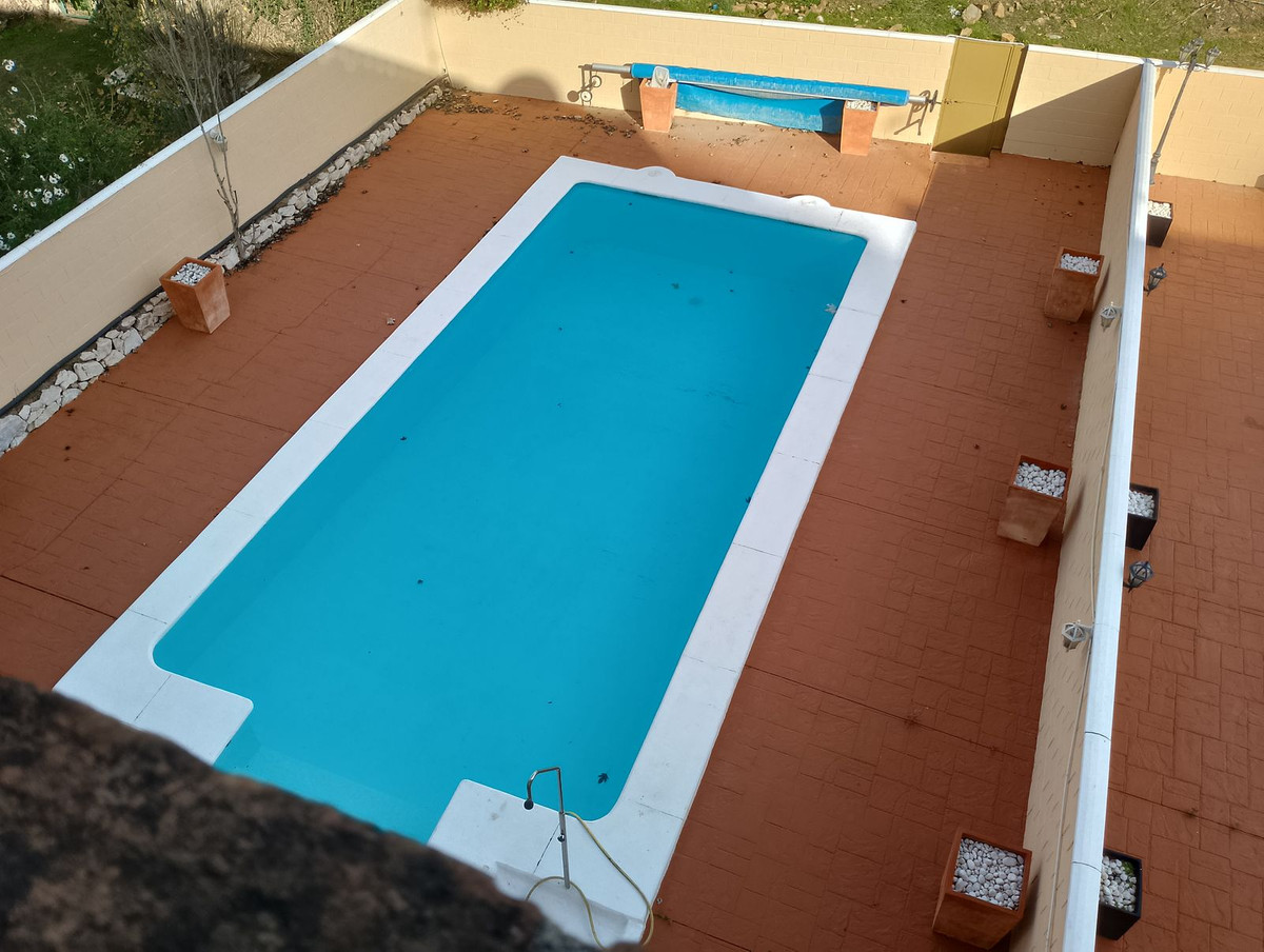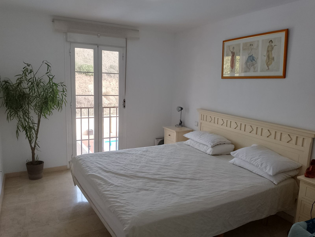• Downstairs, the first level offers four well-proportioned bedrooms and a family bathroom. The main bedroom is particularly spacious, with an en-suite bathroom, fitted wardrobes, and French doors that overlook the pool and scenic countryside.