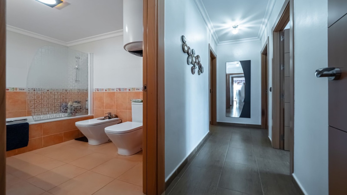 FIRST FLOOR: With a total built area of 181 m, it is divided into two apartments of about 90 m each and symmetrical. Each apartment includes a fully equipped kitchen, living room, 2 bathrooms and 3 bedrooms. Each apartment has an electric boiler and A/C (while the first floor apartment is Gas). One of the apartments has SW-SE orientation and the other apartment has SE-NE orientation.