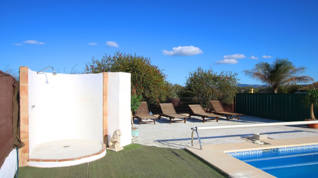 The walled property houses 2 separate patios at the front of the building, a generous covered rear terrace perfect for outdoor entertaining, and a large private swimming pool with outdoor kitchen adjacent.