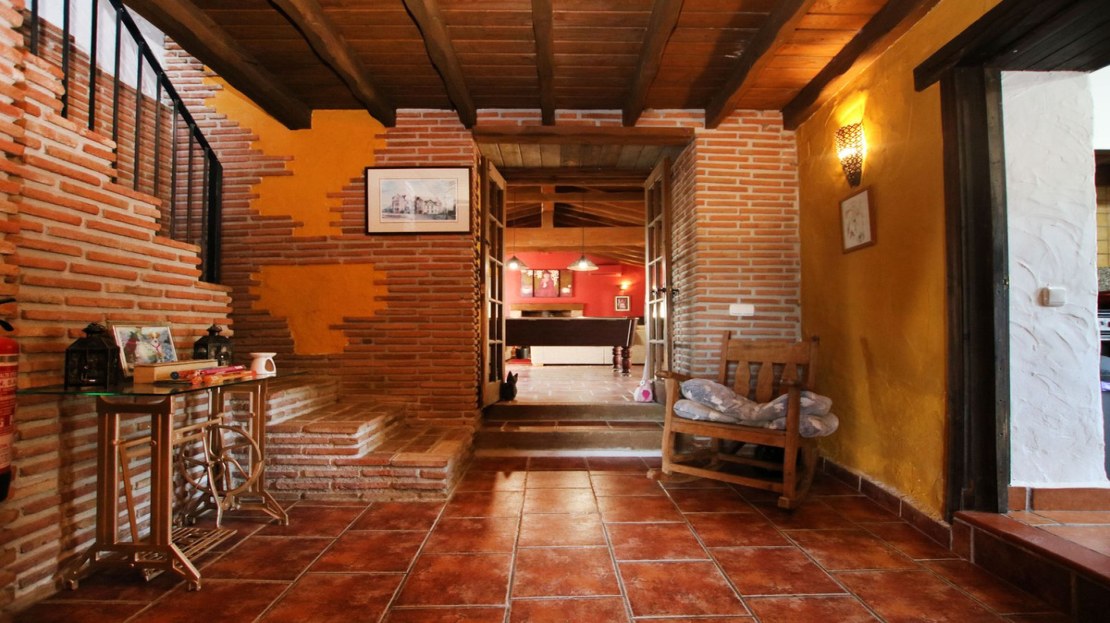 Charming Rustic Home with Distinctive Character – Step into this inviting 6 bedroom rural property, blending rustic charm with modern comfort. Renovated and expanded between 2002-2007, this spacious equestrian home features beautiful details, including warm terracotta tile flooring, exposed wooden beams, and unique textured walls that exude a comfortable Mediterranean vibe.