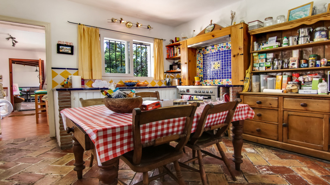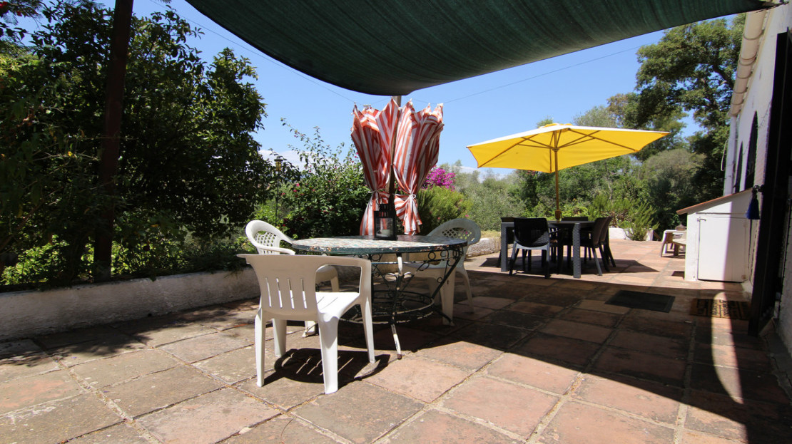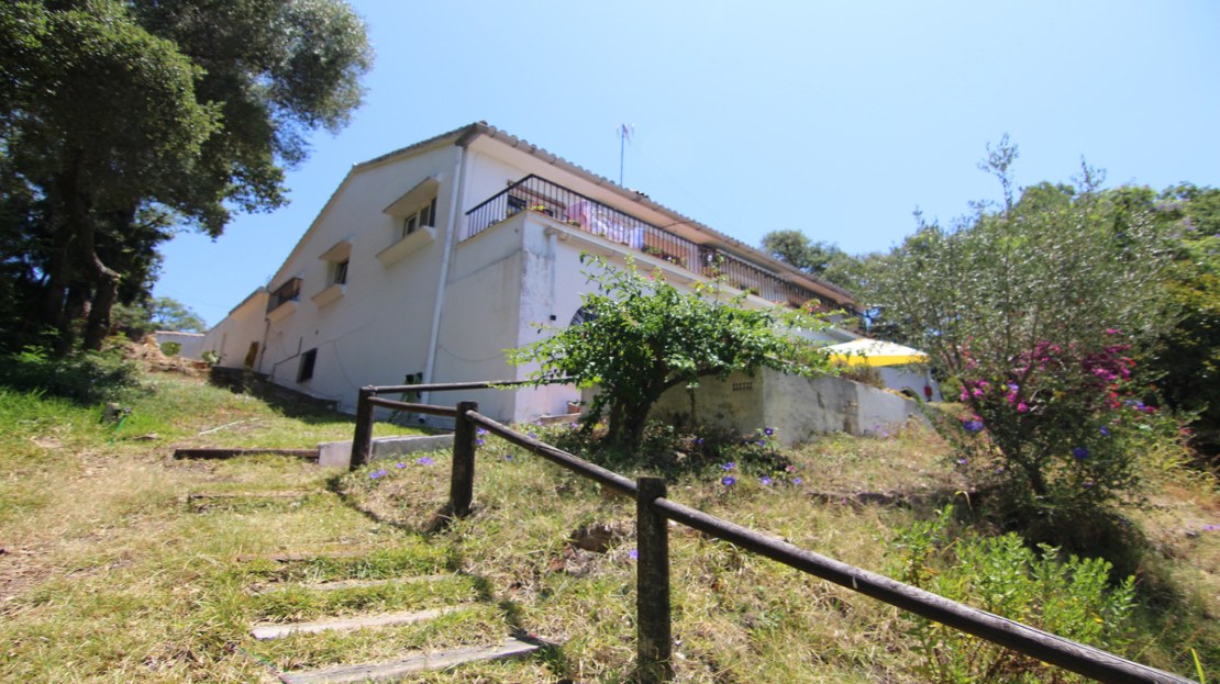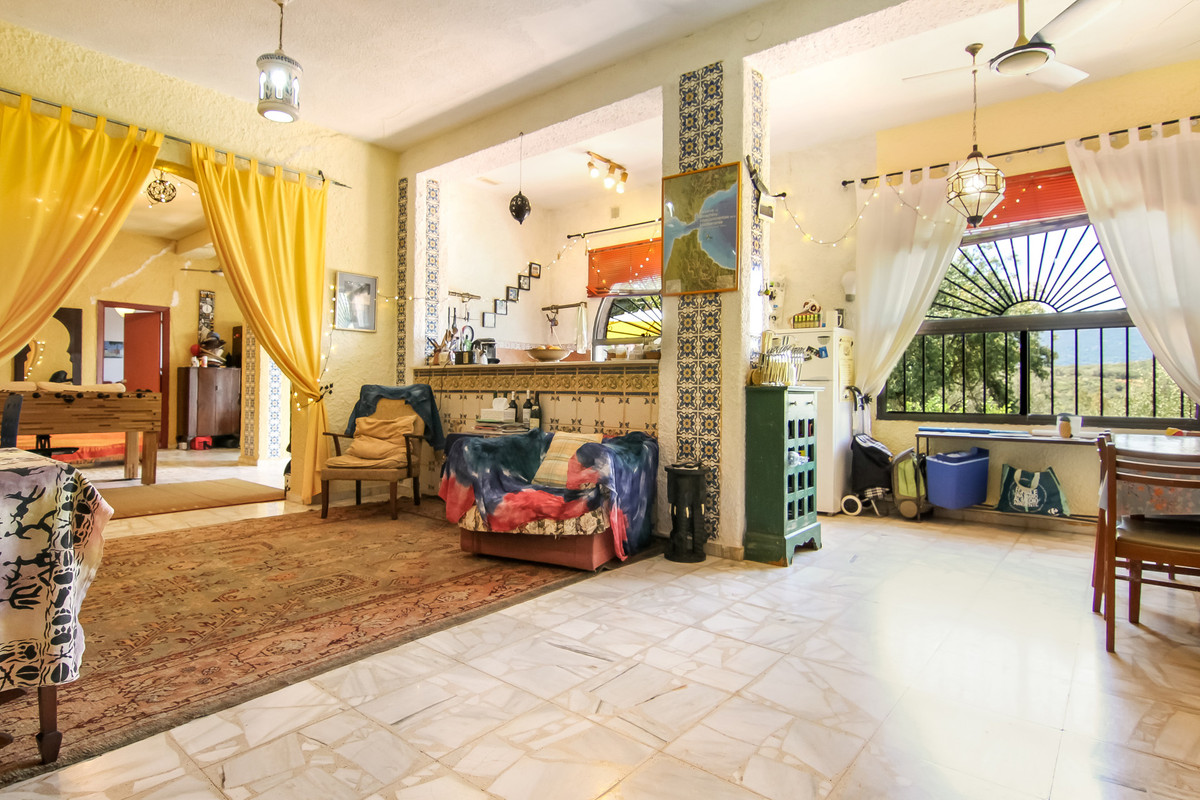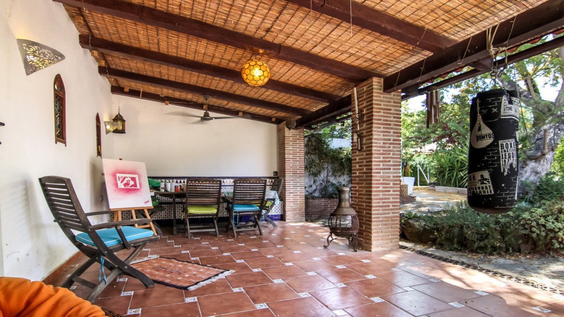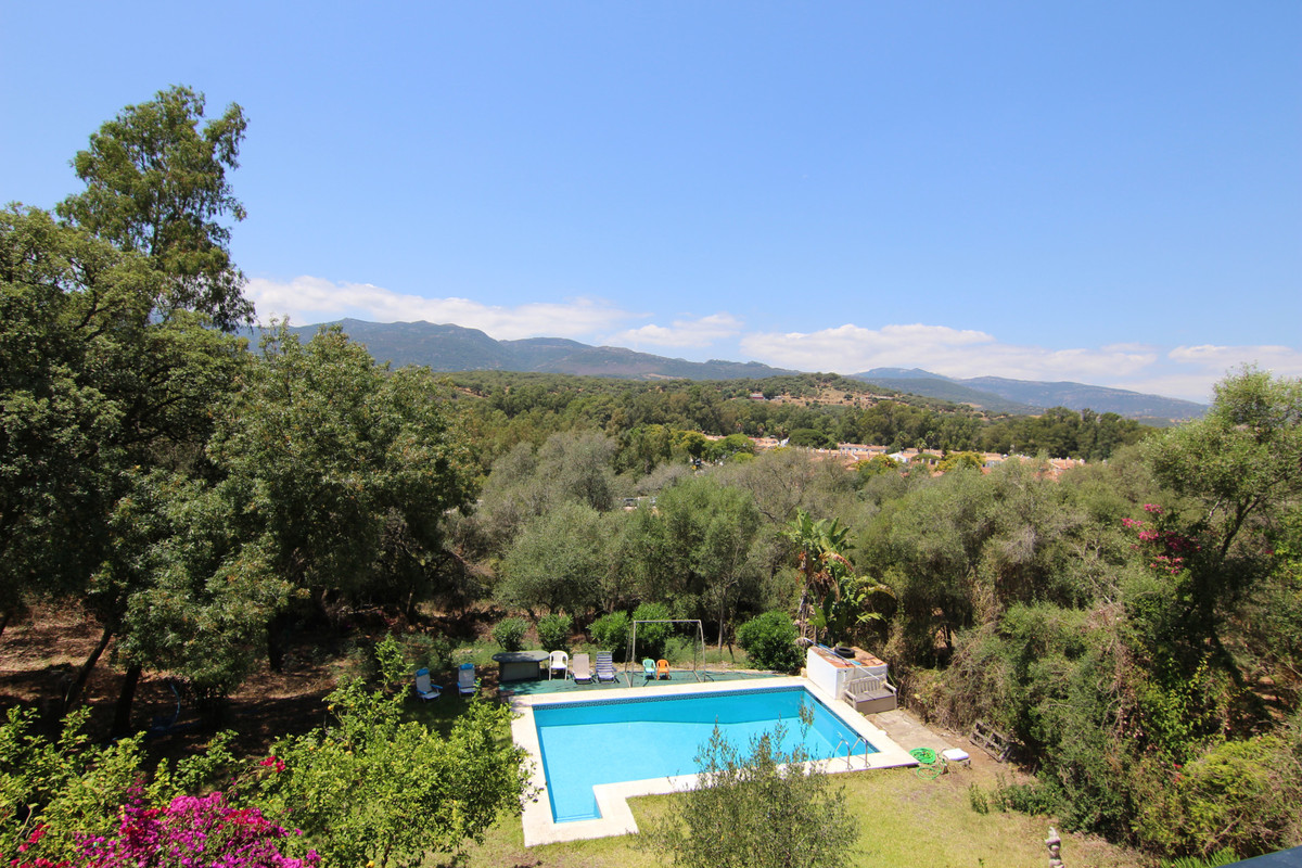 Upstairs there are 3 spacious bedrooms (or 4 if you count the study as a bedroom), 2 bathrooms, a very spacious living room with open fireplace, segregated tv and dining areas as well as panoramic windows and south-facing big balcony to enjoy those stunning views across the Alcornocales National Park forests and mountains, bird watching and star gazing. The beautifully tiled kitchen leads through to a separate laundry room which opens to an outside covered dining/living area. The large upper garden includes plenty of lawn, an outdoor kitchen with bbq, as well as the garage and enclosed large parking area (although the kids preferred to call it the football and basketball ground!).
