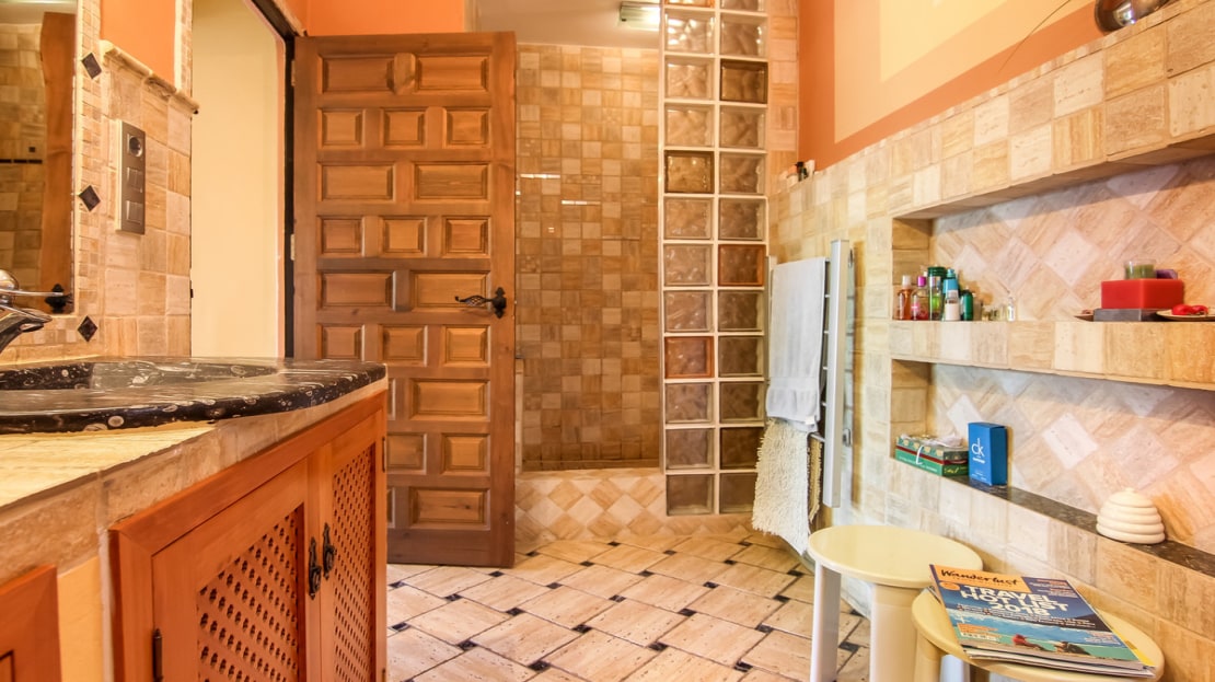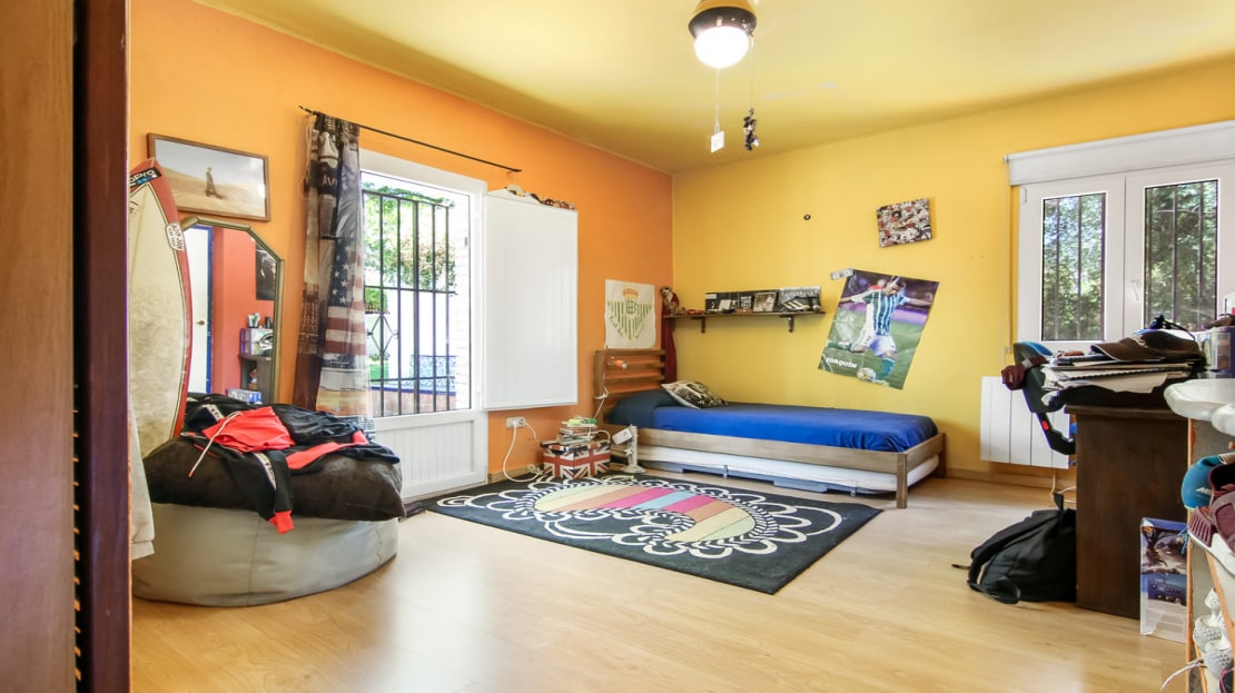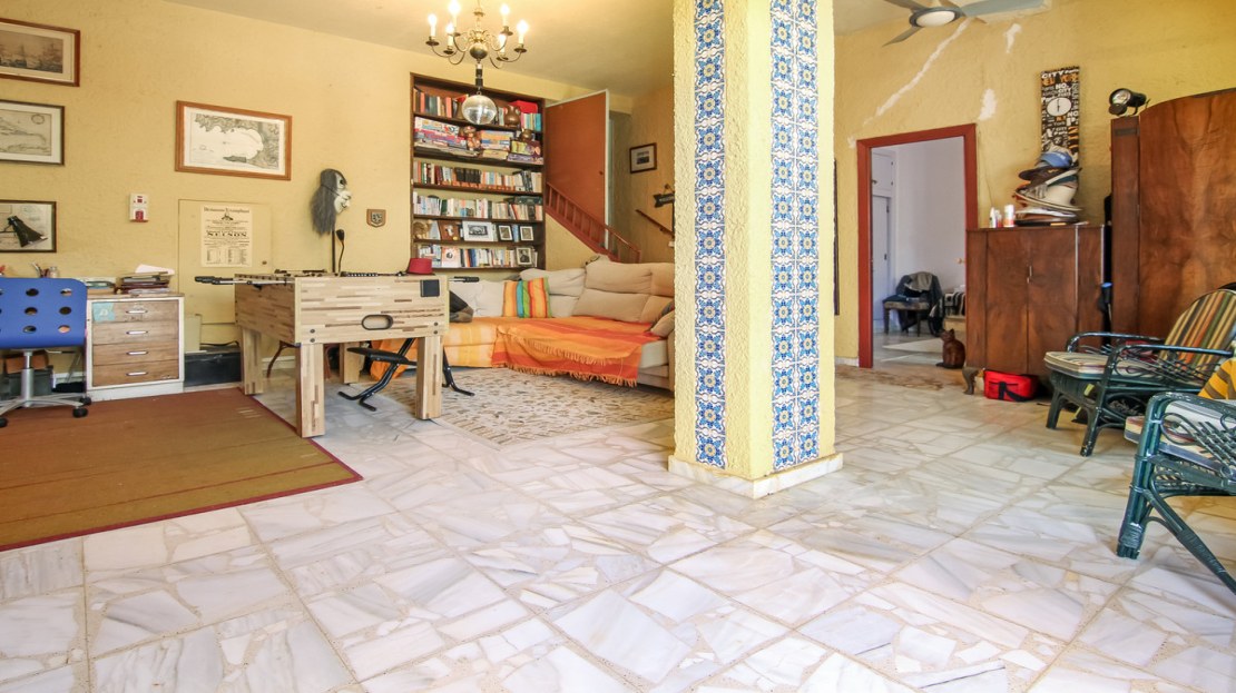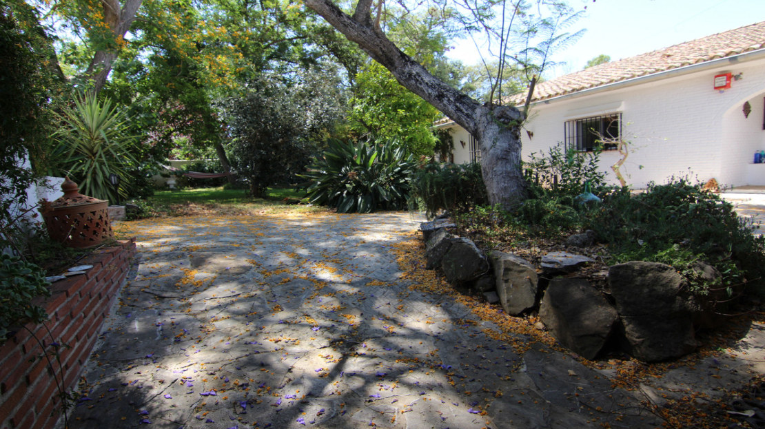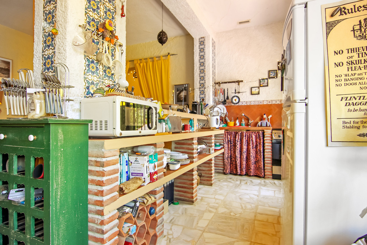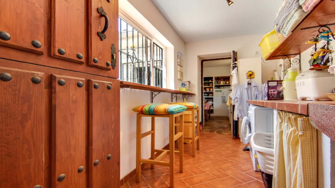 Upstairs there are 3 spacious bedrooms (or 4 if you count the study as a bedroom), 2 bathrooms, a very spacious living room with open fireplace, segregated tv and dining areas as well as panoramic windows and south-facing big balcony to enjoy those stunning views across the Alcornocales National Park forests and mountains, bird watching and star gazing. The beautifully tiled kitchen leads through to a separate laundry room which opens to an outside covered dining/living area. The large upper garden includes plenty of lawn, an outdoor kitchen with bbq, as well as the garage and enclosed large parking area (although the kids preferred to call it the football and basketball ground!).