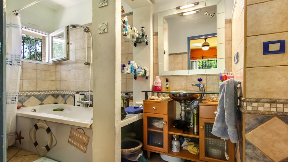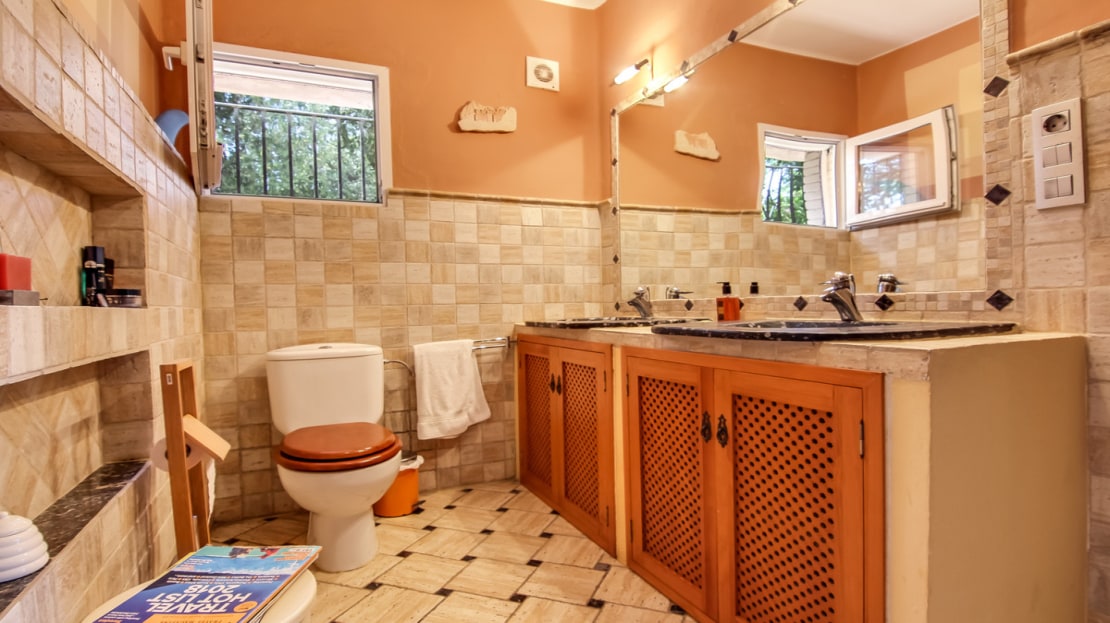 Downstairs there are two large living areas, as well as an open-plan kitchen, together with two double bedrooms, both en-suite. There's also a big storeroom on that level. Outside in the lower gardens there is a separate terrace area with another bbq and a garden with a good-sized swimming pool and plenty of room for sun-bathing, trampolines, volleyball or whatever you like.