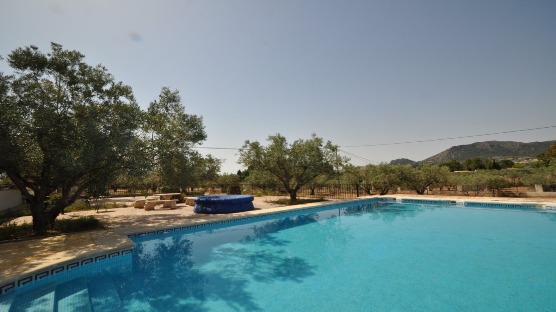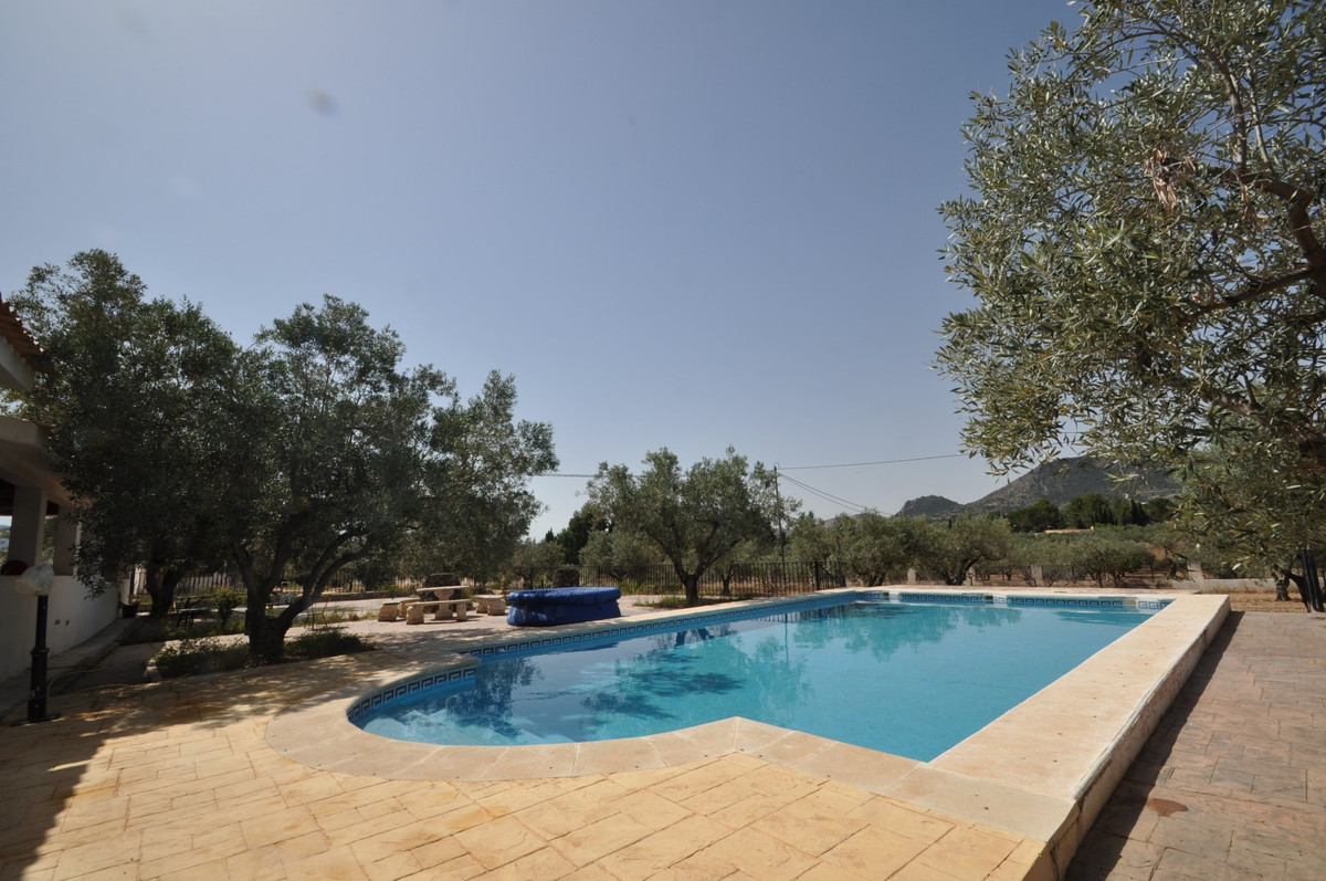 Stunning villa in a very quiet area with good access, just a few minutes from Sax where you will find everything you need.The house has approximately 450 square meters built. It is two houses together but with different accesses. It has a huge common covered porch. In total there are 6 good sized rooms, 4 full bathrooms, 2 dining rooms and 2 kitchens. This property has everything you need. Central heating, fireplace, storage room, security bars … As you can see in the pictures there is a house with a more traditional decoration, and a more modern one.The plot has 10000 square meters, is fenced and has a large pool with terrace area ideal for relaxing. The entrance door is electric and there is lighting on the plot. It has a garage.If you liked this house, do not hesitate to contact us to arrange a visit, we will be happy to help you.We are specialists in the Costa Blanca and Costa Calida specialising in the Alicante and Murcia Inland regions with a particular emphasis on Elda, Pinoso, Aspe, Elche and surrounding areas. We are an established, well known and trusted company that has built a solid reputation amongst buyers and sellers since we began trading in 2004. We offer a complete service with no hidden charges or surprises, starting with sourcing the property, right through to completion, and an unrivalled after sales service which includes property management, building services, and general help and advice to make your new house a home. With a portfolio of well over 1400 properties for sale, we are confident that we can help, so just let us know your preferred property, budget and location, and we will do the rest.