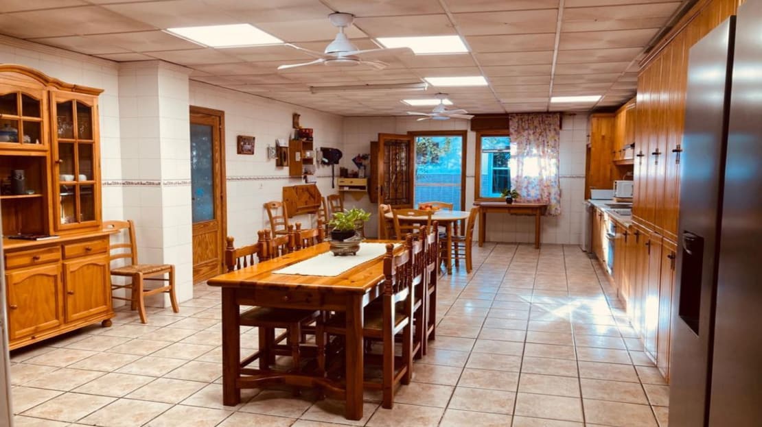 SIX BEDROOM CHALET in a residential area on the edge of Catral. TWO seperate properties, an INNER COURTYARD and double GARAGE add to the charm of this typically Spanish Hacienda style property. Upon entering from the street, you’ll discover the first of these two distinct properties – a charming 1-bedroom, 1-bathroom haven. This initial space sets the tone for what’s to come, providing an intimate and welcoming atmosphere. Exiting this area, you step into a sprawling enclosed courtyard that’s a true sanctuary, embraced by the lush presence of trees and vines that gracefully traverse the walls and drape across the framed rafters. But the enchantment doesn’t stop here. As you progress further, you’ll enter what can aptly be described as the “main building.” This substantial structure houses a kitchen of immense proportions, approximately 50 square meters in size, a testament to the spaciousness of this dwelling. A reception room, warmed by a log burner, sets the stage for comfortable gatherings and relaxation. This expansive layout continues with 5 bedrooms and 2 bathrooms, ensuring ample space for both personal retreats and hosting guests. To enhance the sense of tranquility, there are two smaller inner patios accessible from the rear of the main building, adding to the property’s charm and character. Practicality is not overlooked, as the property also features a double garage, providing secure parking and additional utility. It’s important to emphasize that words alone cannot adequately convey the essence of this property. To truly appreciate its unique character and potential, a personal visit is essential. While it’s true that modernization is in its future, the promise it holds is undeniable. This property offers the new owner not only a residential haven but also a versatile and spacious backdrop for entertaining. The location is yet another highlight. Situated merely two minutes from the Catral medical center and one minute from the nursing home, convenience is at your doorstep. The proximity of the Hiperber supermarket within the same block adds to the ease of daily living. Additionally, the La Palmera park is just a two-minute journey away, offering an inviting outdoor retreat. Further enhancing its appeal, this property holds the potential for utilizing solar energy in its construction. Moreover, the allowance for building up to three heights presents an exciting investment opportunity that holds tremendous promise. In summary, this property represents an exceptional offering that transcends conventional descriptions. Its dual nature, captivating courtyard, and expansive layout create a canvas of possibilities for personal living and hosting memorable occasions. To fully grasp its essence and potential, a visit is a must. Don’t miss this opportunity – contact us today to arrange a viewing and embark on a journey of discovering all that this remarkable property has to offer. Features Bedrooms:6 Bathrooms:2 Built:187m2 Balcony:42 m2 Garage:Private Kitchen:Open Private Terrace Solar Panels Installed Private Garage