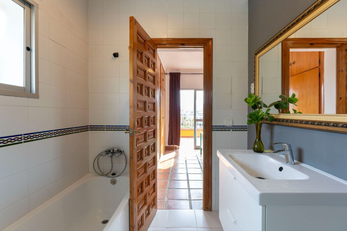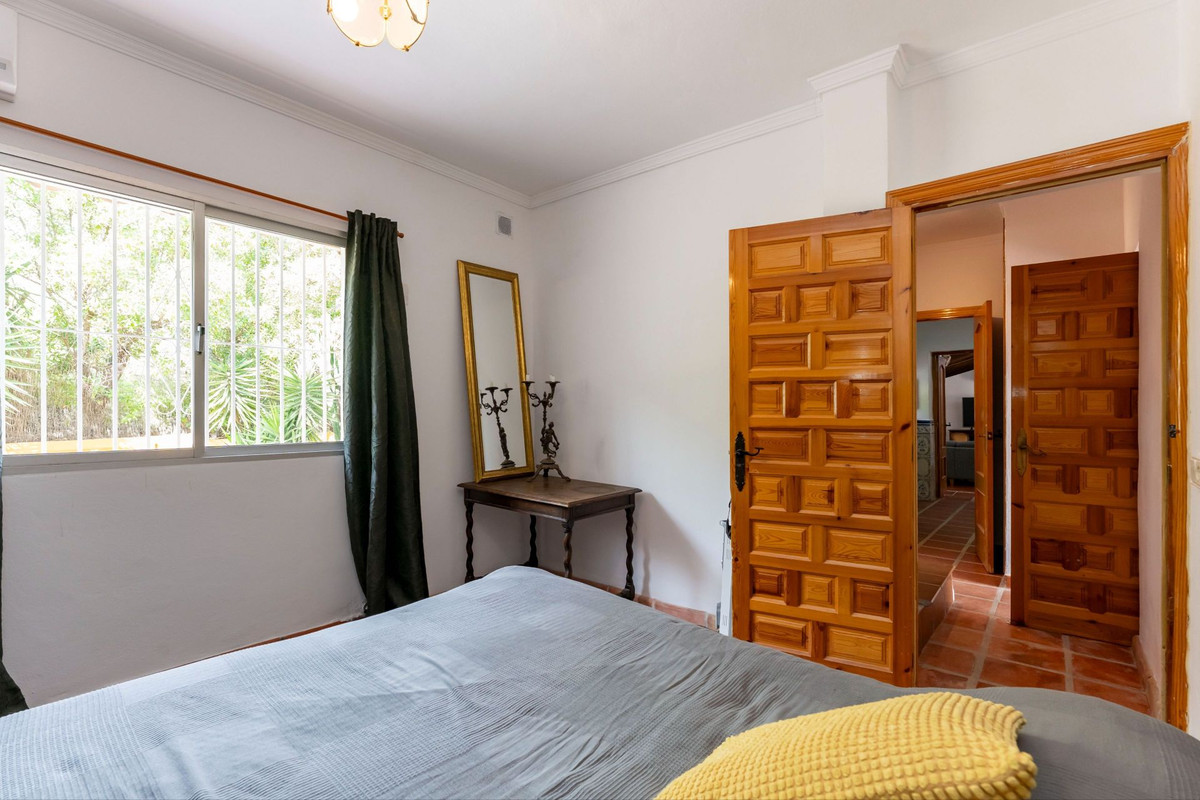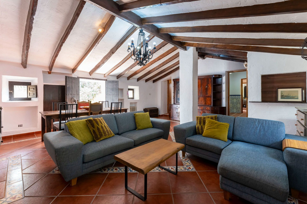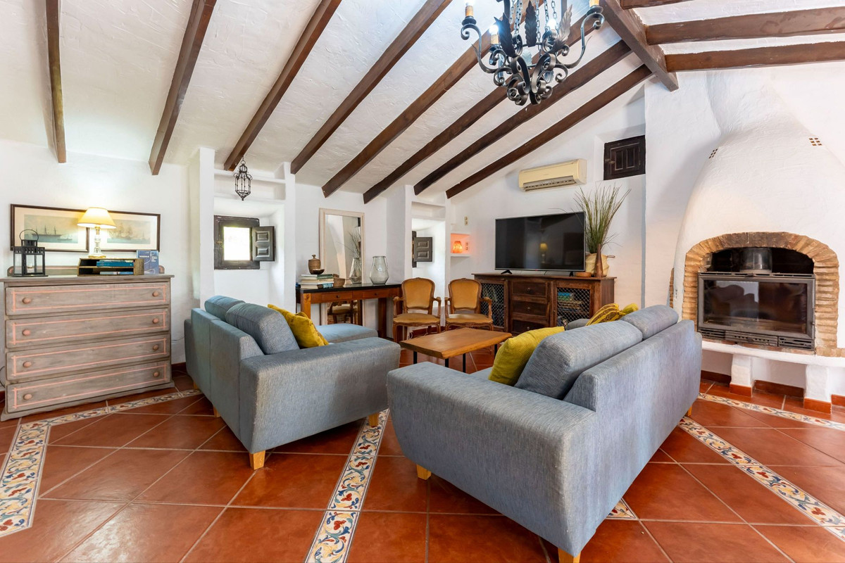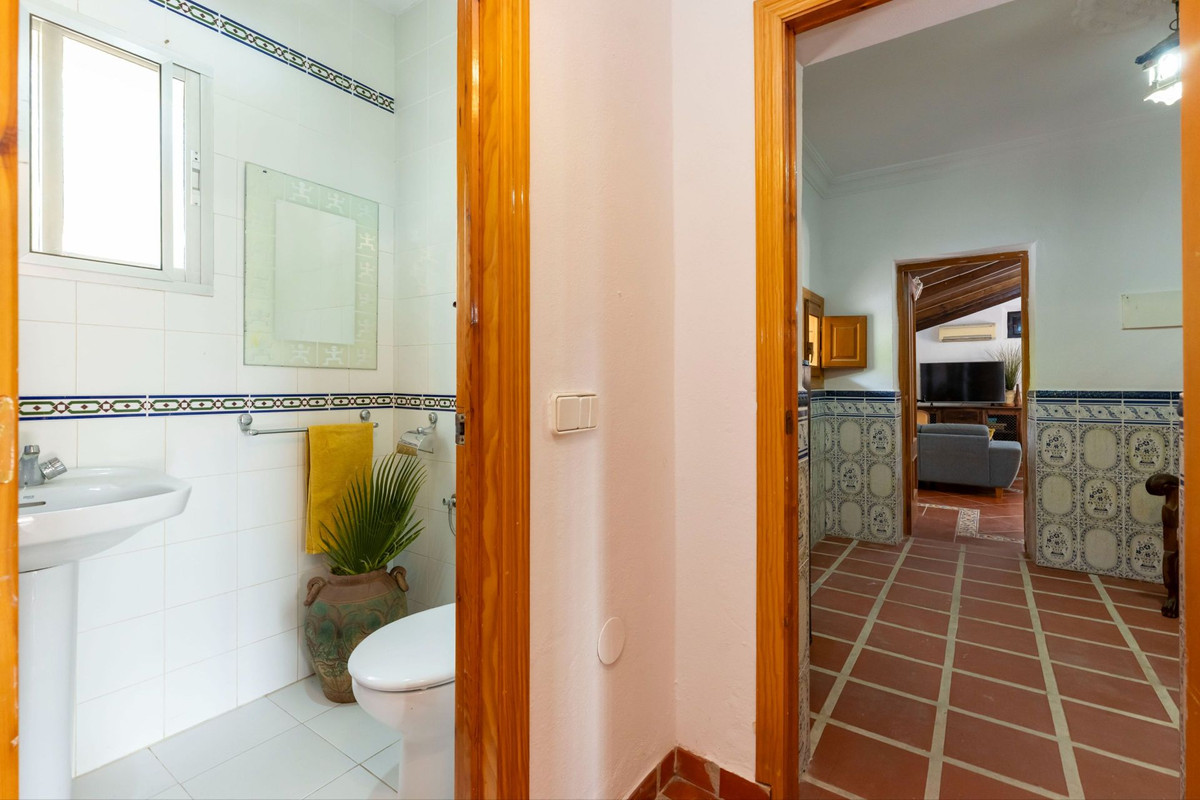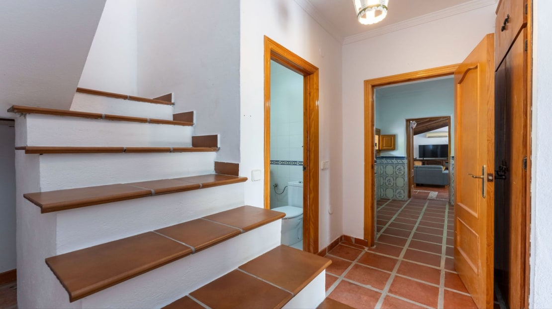 The main house is thoughtfully distributed over two floors, blending Andalusian charm with mod-ern comfort. Upon entering, you are welcomed by a traditional Andalusian-style entrance hall. To the left, the cozy living room features vaulted wooden ceilings, a striking feature fireplace, air conditioning, and four charming original wooden windows. This space opens directly onto a spa-cious terrace, perfect for outdoor relaxation.