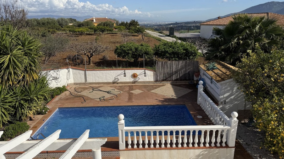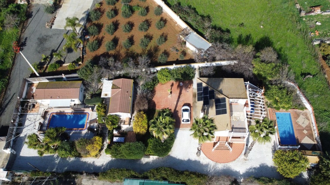 This country property, located between the villages of Alhaurín El Grande and Alhaurín de la Torre, offers convenient access and is situated near Lauro Golf and approximately 20 minutes from Málaga and the airport. It has lovely views of the mountains and the bay of Málaga.